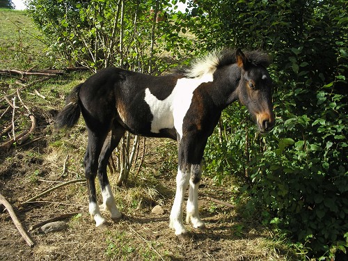 Her er to av våre søte små på stallen blitt litt større, ca 2 mnd. Connemara-hingsten er langbeint og slank, men Nordlands-hingsten er liten og rund