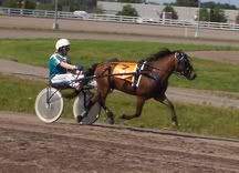 Men det er altså den hesten øverst i bildet som er min.. han med luftsjekk..kusk Rune Wiig..