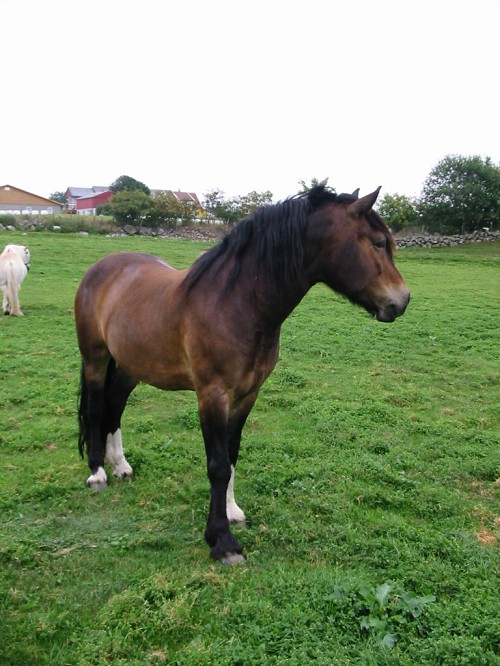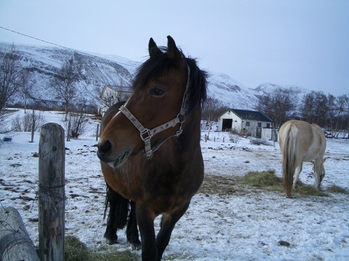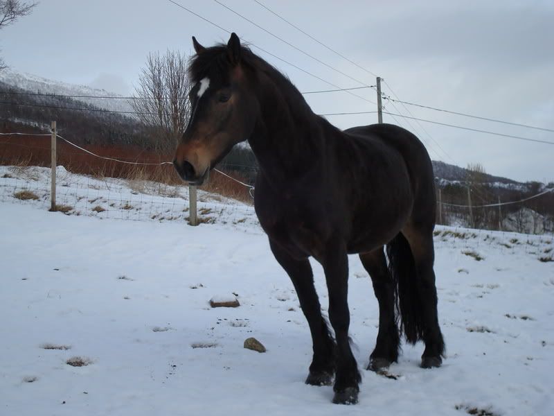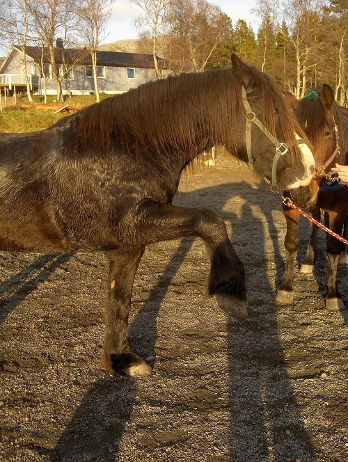 Får slenge inn et bilde av Kaldblodsen til Svigerfaren til mamma og, som står sammen med hesten min.