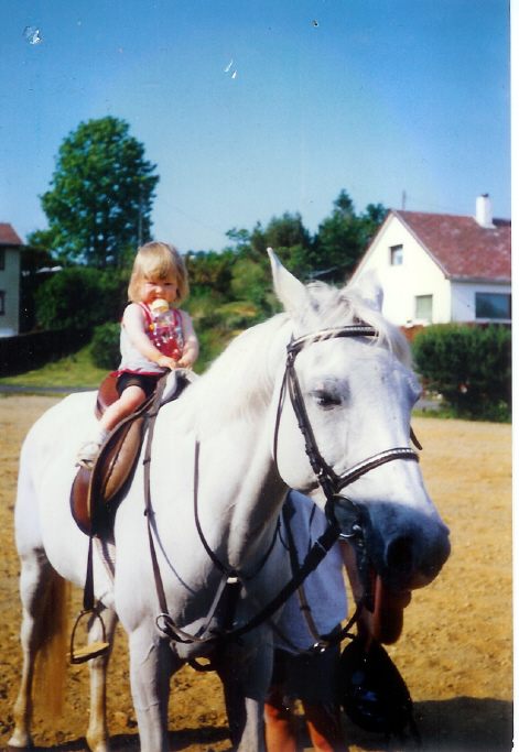 Har visst glemt hjelm her Men her er hun 2 år, og sitter på min veninnes arabergutt, Prishmir