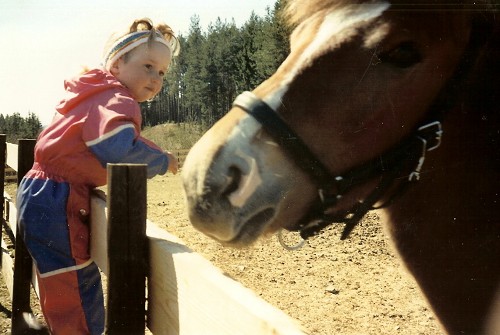 Mitt første møte med hest var vel her: