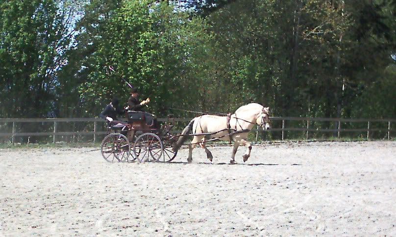 Dette er den ulsblakke hingsten Aarnesblakken som jeg red før, på kjørestevne på Ekeberg.