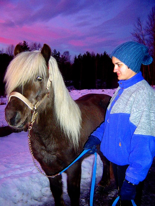 På dette bildet er han bare 1 år, og så sommerbeite.(oxo ser vi på hesten, og ikke meg...) Sommerpelsen hans er lysere enn vinterpelsen.