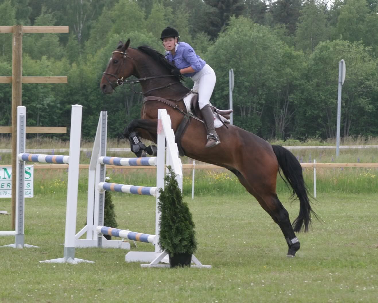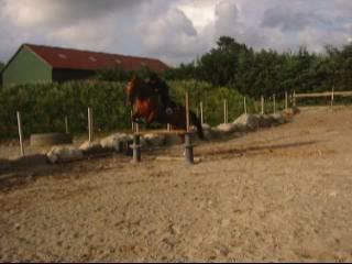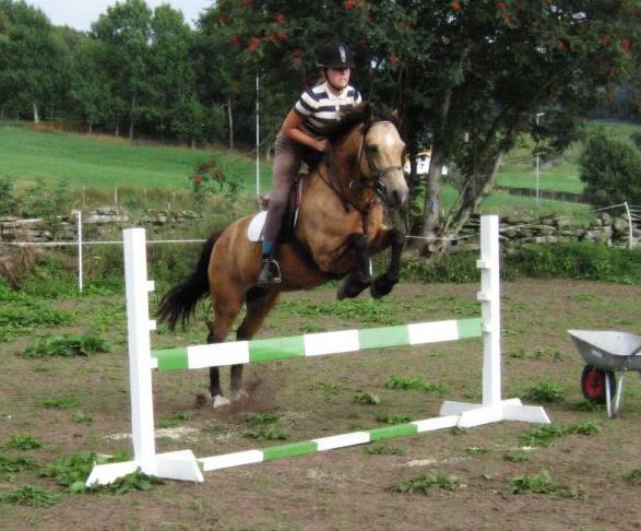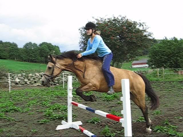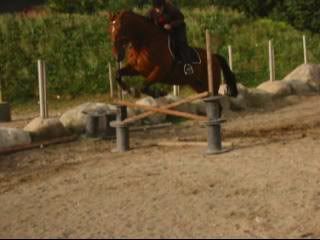 Her er to bilder av Klippa...det første er av min trenmenning som hopper over eit steingjerde, og det andre er av meg og klippa på vårt første stevne tror det er 70cm