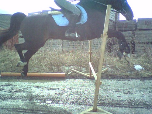 Meg Og Fighting, hindret var satt på 50- 60 der tror jeg, men han hoppa jo det Dobbelte, så satt det på 95cm. etterpå. Prøvde ikke noe høyere, for er så dårlig underlag å hoppe på;/