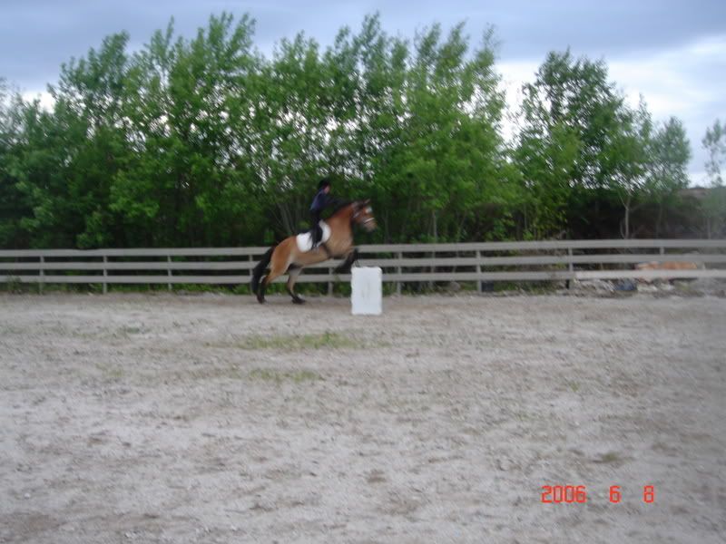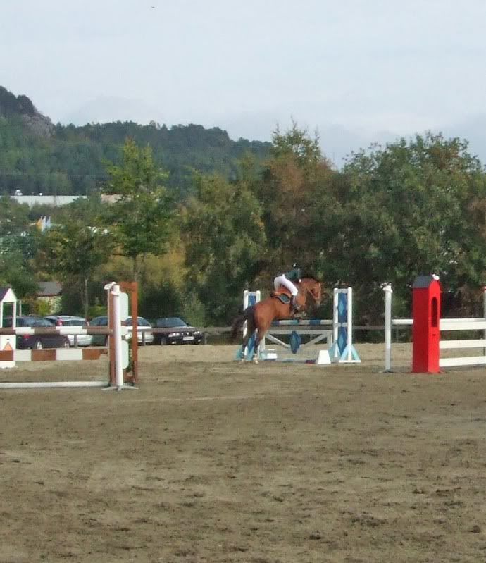 Her hopper jeg og hesten min Stjerna ca. 1 m. Likte ikke så godt sitsen min på bilde.. men, men. Kom gjerne med ris og ros!