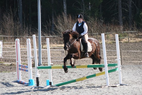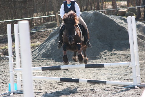 Jeg og Trolltind på sprangtrening. Her bråstoppa Trolltind foran hindret, så hoppa han:p