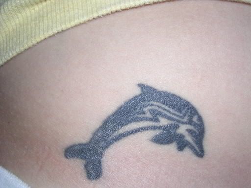 har en tattovering på korsryggen.. En drage..skulle visst nok være eneste i landet som har den siden de måtte gjøre den om for å få laget den der:)