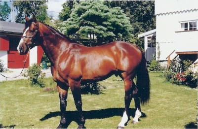 Det er April Fool, her er han 4 år, og nettopp kommet hjem fra kvalitetsbedømmelsen, hvor han SELVSAGT ble beste spranghest, og nr 3 som dressurhest!