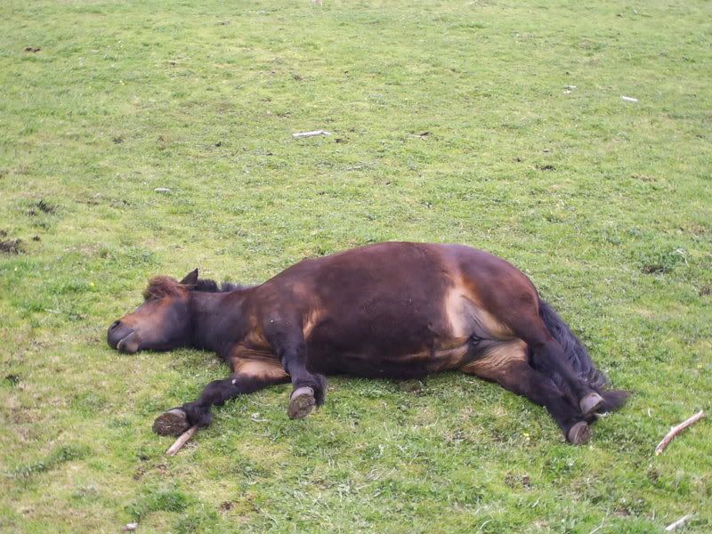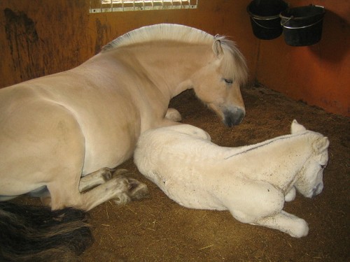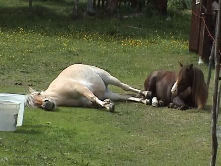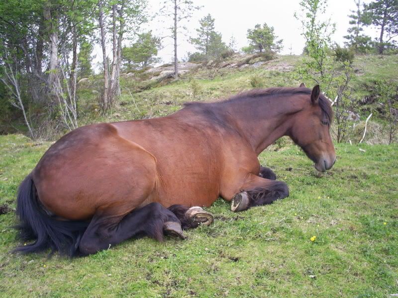 Uff, kom til hestene på morran idag, og da lå alle rett ut.