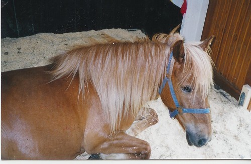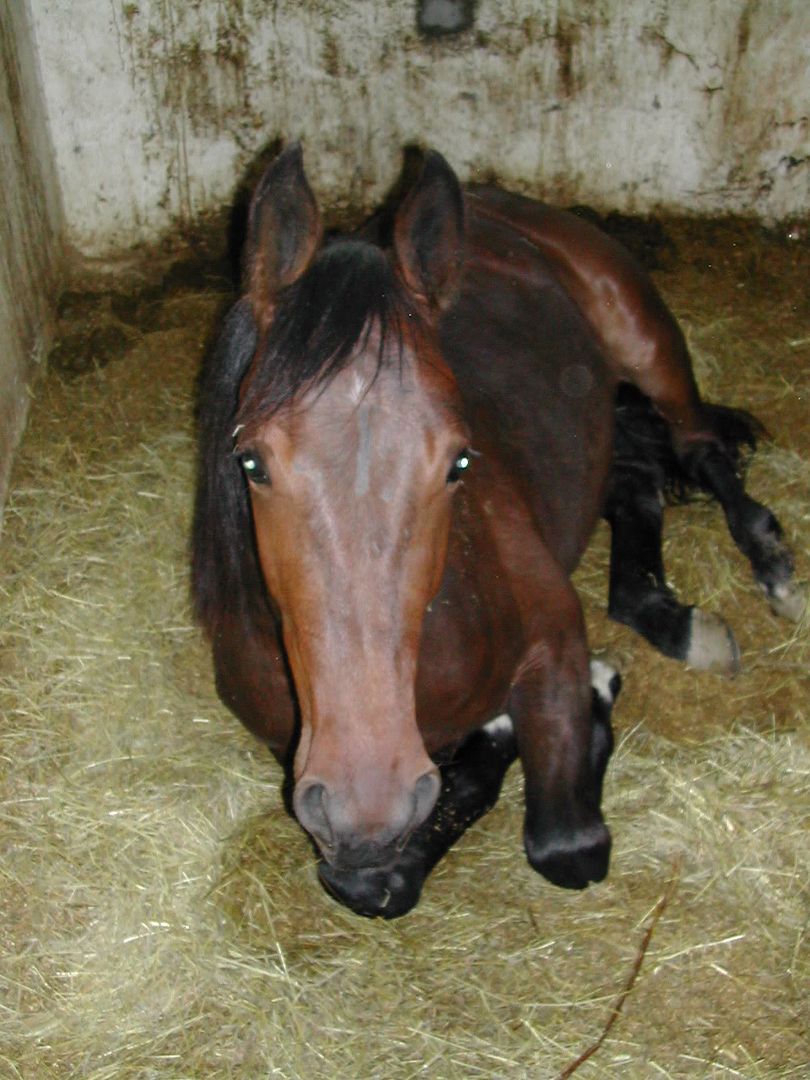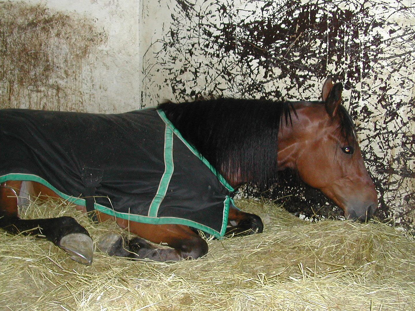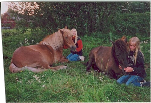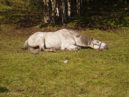 Fora hoppene, og gikk nedover mot beite til hingstene for å se at alt stod bra til. De lå også. Mahjiino reiste på hode når han så at jeg kom, men Jack enset meg ikke. Prøvde å rope på han men heller ingen reaksjon da. Ikke så jeg at han pustet heller...
