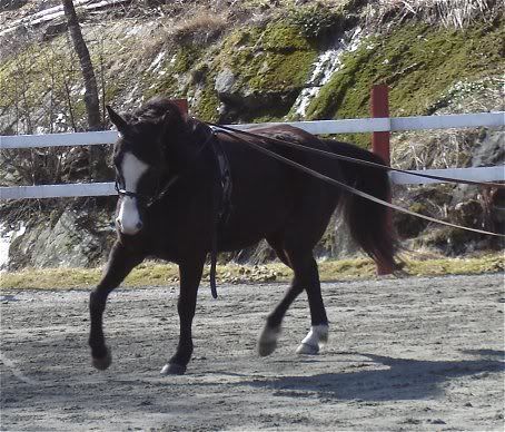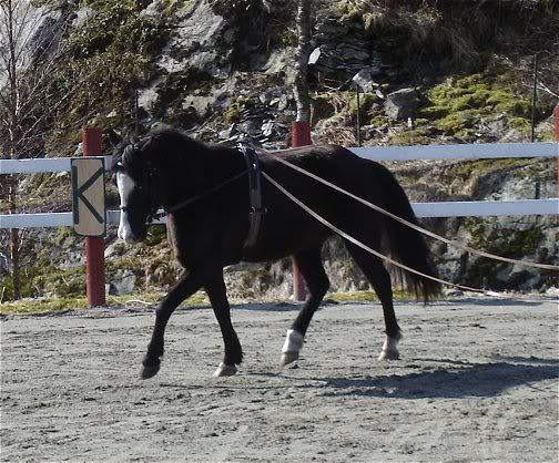Veldig lærerikt dette. Nå begynner endelig min lille ramp og gå bedre i longen, og ser ut til å like det:)