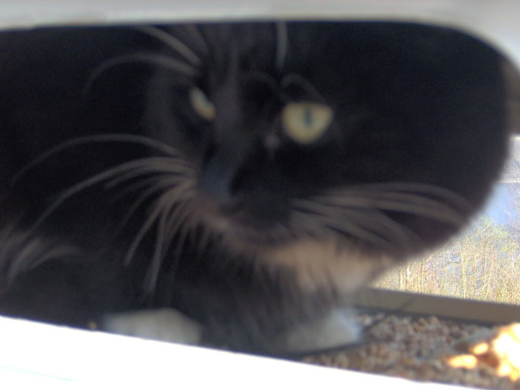 cassandra pusen til søster som ligger i fuglehuset på jakt.