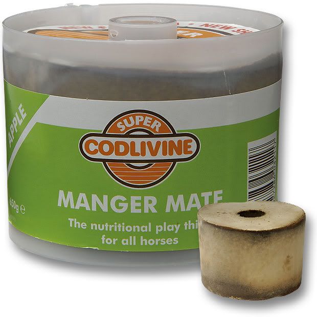 Det finnes også noen baller du kan fylle med pellets og så må hesten rulle på ballen for å få ut maten. Hestene skjønner raskt hvordan de må gjøre, og pleier å elske de. Vet ikke helt hvor de selges, men tror de er ganske dyre...:(