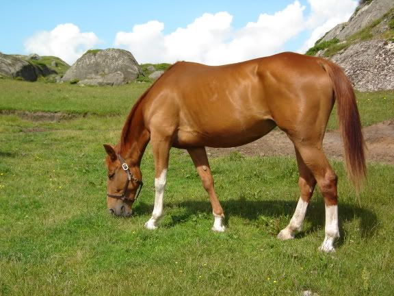 munti: WOW! for en forskjell på den hesten din.. På det første bildet så han jo veldig tynn og lite muskuløs ut, men på bilde nr 2 så han jo helt fantastis ut!