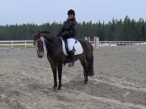 I tillegg til dette har hun selvsagt utviklet seg "utdanningsmessig". Da hun kom var hun en kjip ridehest som ikke kunne noe og som hele tiden kastet på hodet og dro i bittet. Hun tygget også på tøylene om hun fikk sjangsen. Alt dette har hun (heldigvis!!) sluttet med. Så alt i alt er jeg veldig fornøyd med jobben Sharmis og jeg har gjort sammen, og angrer ikke et sekund på at jeg brukte masse penger på å hente en hest jeg så vidt hadde sett på bildet og aldri ridd før jeg tok henne med hjem - hun er utvilsomt blitt en bestevenn og sjelefrende!