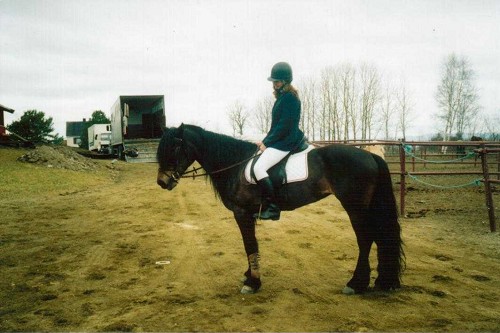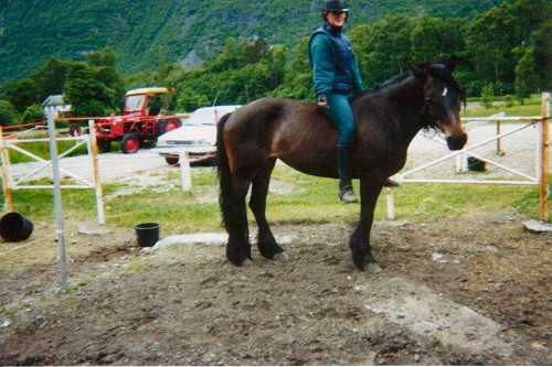 Har ingen bilder fra den første tiden jeg eide Holter (i desember i år har jeg hatt henne i 10 år), men hun var en topptrent traver med stålkondis, prøvde å bevare den gode kondisen, men det ble vanskelig (hadde ikke tid til å trene henne 2 ganger om dagen), og dessuten begynte omskoleringen, og så stressa som hun var måtte vi ri kun i skritt veldig lenge.