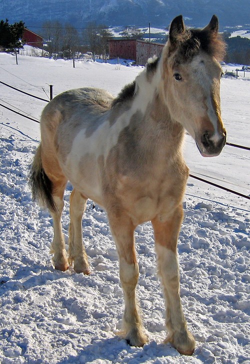 Ok Hun var fin asså, med klipt pannelugg, var ikke derfor jeg spurte Men synes også det er fint med langt hår jeg da. Pintoen min begynner å få lang man og pannelugg, og jeg håper den blir myyye lenger. Stolt flekkete hingst med masse hår