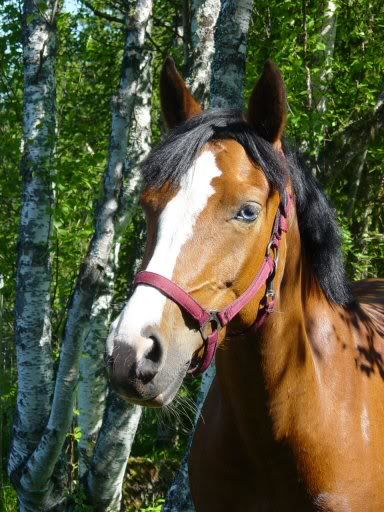 litt gal er han nå enda! hehe neida, han er så fin hest atte. synes øynene hans er kjempekule, synes liksom det gir ham enda mer personlighet. tror også det med farger og lynne bare er tull, bra poeng med den sauehistorien!