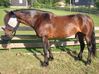 Her er noen bilder av fluemaska jeg har. kjøpte den på hööks for 149 kr og har aldri vært borti bedre maske før. den tåler all herjingen som hesten min driver med. Til og med når hun står og klør hodet sitt mot grantrær holder den seg hel.
