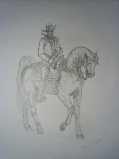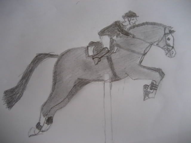 En jeg tegnet for en stund siden. Hodet til mannen ble litt lite, og fikk ikke helt til det bakerste beinet, men ellers ble jeg ganske fornøyd =)