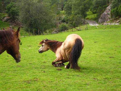 Hehe FIkk ikke tak i dekkengjord. Fikk bestilt tilslutt, men da hadde dessverre dekkenet allere røket Men men... Hun sto veldig fint når det skjedde og sånn. Er litt værre det hesten til venninna mi gjorde. Hun heiv dekkenet over hodet og hun