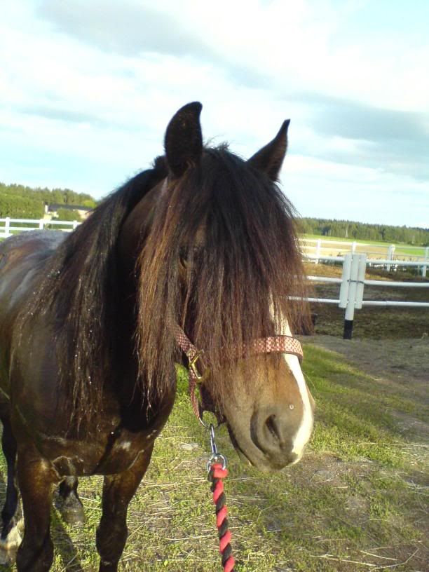 Her er min hest, eller egentlig min gamle hest.. Han reiser neste helg. da er han solgt.=( Menmen! Får ny neste helg og da;) Kaldblodsvallak, kullsvart med hvit stjerne.. 6 år, minst 155 mkh.. :)