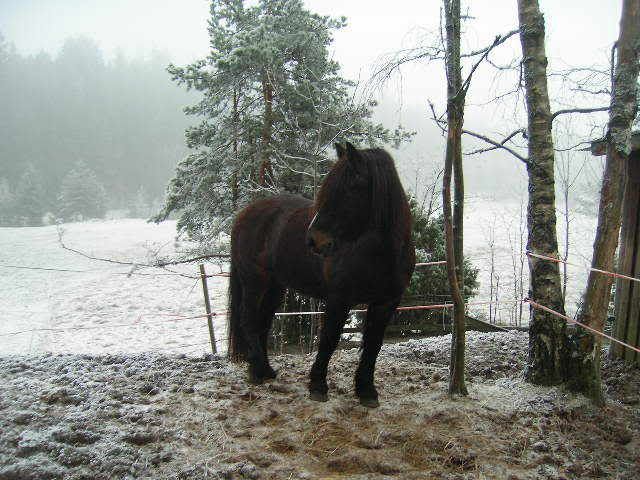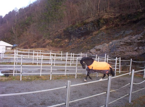 må legge inn bilde av nydelige pamintrollet.. når han komtil stallen lurte jeg på hvorfor jeg hadde hest:p selv om vinter er finere;p men dere skulle sett han der han kom ut av hengeren<3 han var så elegan med den nakken.. fin å ri er han også.. bare jeg som har ridd han utenom eieren da:p og jeg skal få lov å ri han masse=)