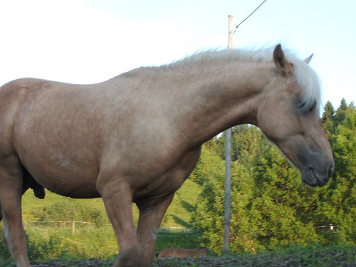 Legger ved ett bilde av den ene ponnien min som nesten alle syns var "STYGG" i vinter(hadde MASSE vinterpels!) Til og med hu jeg kjøpte ham av presterte å spøre hvordan det gikk med den"STYGGE,FÆLE ULLDOTTEN"! Noen gikk så langt som til å kalle ham en blanding av sau og esel! Se for en skjønnhet han var under all pelsen,da?!