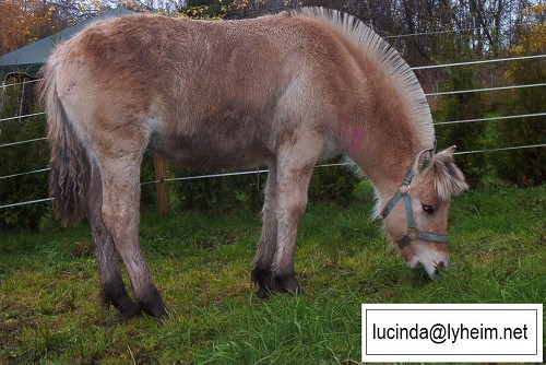 Forøvrig synest eg ikkje bilde gir meg så veldig mykje til å uttale meg om hesten. Men eg har sjelden opplevd fjordingen som tjukk og treig. Med masse pels ja nokon har det på vinteren. Det er så.
